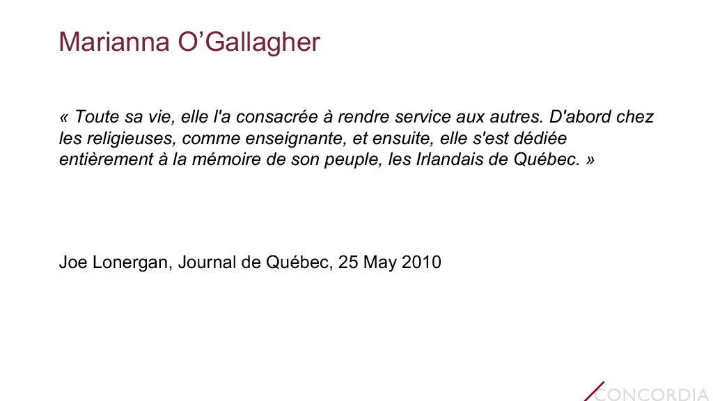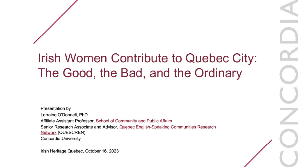 Contribution of Québécois Women of Irish Descent